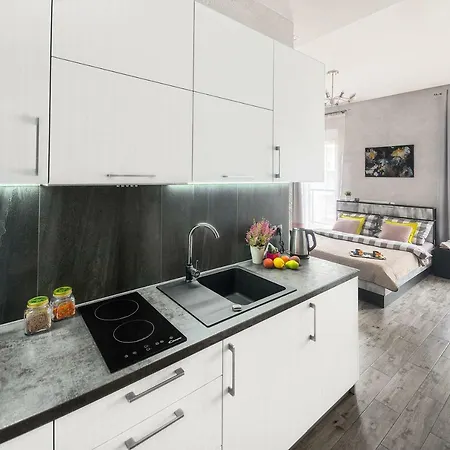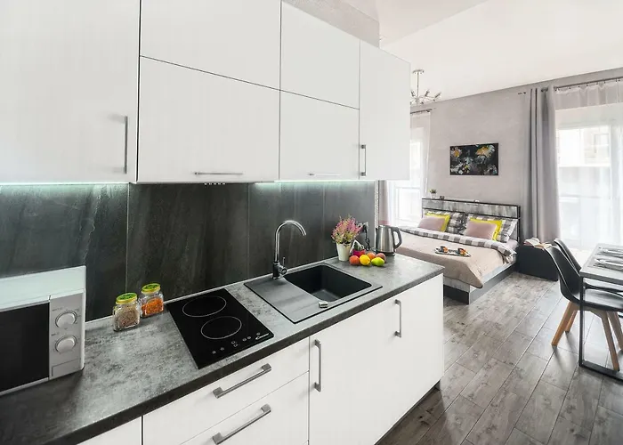 Für Ihren Komfort bietet die Unterkünfte Küchenzeile mit einem Wasserkocher, einem Kühlschrank und Küchenutensilien. Die nächste Bushaltestelle Plac Solidarnosci liegt in circa 5 Gehminuten Entfernung. Die Gegend eignet sich auch perfekt zum Wandern.